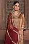 Featuring an antique gold kurta in tissue base with sequins, thread and gota embroidery. It is paired with tissue pants and an organza dupatta. Accentuate it with kundan polki jewellery and block heels for a festive occasion or sangeet ceremony.