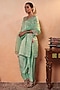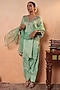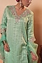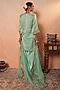 Featuring an aqua kurta in tissue stripe base with gota, sequins and thread hand embroidery. It is paired with chanderi salwar pants and a pure organza embroidered dupatta. Accentuate it with polki earrings and kolhapuri flats for festive gatherings or pooja ceremony.