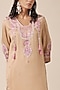 Featuring a beige kurta in pure organza base with geometric motif, mirror and thread embroidery. It is paired with chanderi pants and a pure organza dupatta. Accentuate it with polki earrings and kolhapuri flats for festive gatherings or pooja ceremony.
