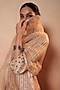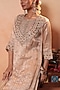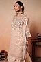 Featuring a beige kurta in tissue stripe base with gota, sequins and thread hand embroidery. It is paired with chanderi salwar pants and a pure organza embroidered dupatta. Accentuate it with polki earrings and kolhapuri flats for festive gatherings or pooja ceremony.