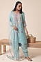 Blue Pure Organza Thread Embroidered Kurta Set