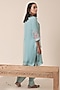 Featuring a blue kurta in pure organza base with geometric motif, mirror and thread embroidery. It is paired with chanderi pants and a pure organza dupatta. Accentuate it with polki earrings and kolhapuri flats for festive gatherings or pooja ceremony.