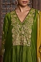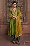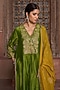 Featuring a mehendi green kurta in silk chanderi base with zari hand embroidery. It is paired with chanderi pants and a mustard viscose organza dupatta. Accentuate it with kundan polki jewellery and block heels for a festive occasion or mehendi ceremony.