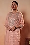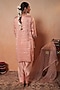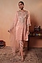 Featuring a peach kurta in tissue stripe base with gota, sequins and thread hand embroidery. It is paired with chanderi salwar pants and a pure organza embroidered dupatta. Accentuate it with polki earrings and kolhapuri flats for festive gatherings or pooja ceremony.