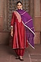 Featuring a red kurta in chanderi base with aari embroidery. It is paired with chanderi pants and a purple viscose organza dupatta. Accentuate it with kundan polki jewellery and block heels for a festive occasion or sangeet ceremony.