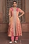 Featuring a rust orange anarkali in silk and tissue base with zari, sequins and beads hand embellishments. It is paired with chanderi pants and a chanderi inner. Accentuate it with kundan polki jewellery and block heels for a festive occasion or sangeet ceremony.