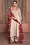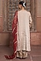 Featuring a silver kurta in tissue base with sequins, thread and gota embroidery. It is paired with tissue pants and an organza dupatta. Accentuate it with kundan polki jewellery and block heels for a festive occasion or sangeet ceremony.
