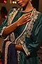 Featuring a turquoise blue kurta in chanderi base with aari embroidery. It is paired with chanderi pants and a viscose organza dupatta. Accentuate it with kundan polki jewellery and block heels for a festive occasion or sangeet ceremony.