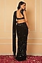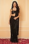 Featuring a black pre-draped saree in chiffon base with embellishments. It is paired with a blouse. Accentuate it with statement earrings and block heels for wedding, sangeet or engagement ceremonies.