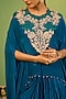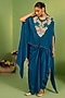 Featuring a blue kaftan in crepe base with sequins, pearls and marodi work. It is paired with a skirt. Accentuate it with silver jewellery and heels for festive occasions.