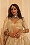 Featuring a cream lehenga in organza base with gota and zardosi embroidery. It is paired an embroidered blouse and an organza dupatta. Accentuate it with statement earrings and heels, perfect for a wedding, sangeet or engagement ceremony.