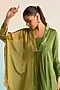 Featuring a green cape in rayon crush base with sequins, cutdana and beadwork. It is paired with crepe dhoti pants and a bustier. Accentuate it with silver jewellery and heels for festive occasions or wedding ceremony.