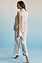 Featuring an ice blue jacket in organza base with cutdana embroidery and hand painting. It is paired with a kora silk bustier and crepe pants. Accentuate it with silver jewellery and heels for brunch or casual outing.