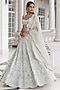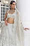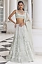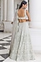 Featuring an ice blue lehenga in satin organza base with embellishments. It is paired with an embellished blouse and an embellished dupatta. Accentuate the designer lehenga with zircon or pearl jewellery and embellished heels for weddings, sangeet or reception ceremony.