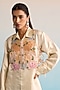 Featuring a lemon yellow shirt in modal silk base with cutdana work and hand painting. It is paired with pants. Accentuate it with silver jewellery and heels for a complete look.