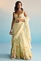 Featuring a lemon yellow lehenga in soft organza base with sequins and cutdana work, including hand painting. It is paired with a blouse and a dupatta. Accentuate it with silver jewellery and heels for festive occasions.