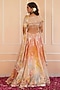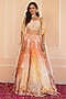 Featuring an orange shaded lehenga in satin organza base with thread hand embroidery. It is paired with a blouse and a dupatta. Accentuate it with statement earrings and block heels for wedding, sangeet or engagement ceremonies.