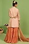 Featuring a peach kurta in organza base with gota patti hand embroidery. It is paired with georgette sharara pants and an organza dupatta. Accentuate it with silver jewellery and heels for festive occasions or wedding ceremony.