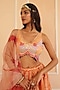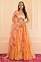 Featuring a rust orange lehenga in tissue base with embellishments. It is paired with a blouse and an embroidered dupatta. Accentuate it with statement earrings and block heels for wedding, sangeet or engagement ceremonies.