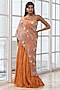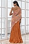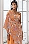 Warm Burnt Orange Satin Organza Floral Motifs Embroidered Cape Dress