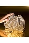 Featuring a gold bucket bag in velvet base with crystal work. It has a short handle chain and center push lock closure. Style this potli bag with anarkalis, ethnic or sarees for a regal touch. Perfect for weddings, receptions, and festive celebrations.