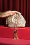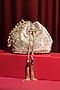 Featuring a gold mini bucket bag in velvet base with crystal work. It has a sling chain, wrist chain and center push lock closure. Style this potli bag with anarkalis, ethnic or sarees for a regal touch. Perfect for weddings, receptions, and festive celebrations.