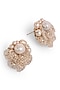 Featuring a pair of gold finish floral stud earrings studded with mother of pearls, set in brass. Perfect for elevating cocktail evenings or adding sparkle to celebratory dinners.