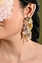Featuring a pair of gold finish floral dangler earrings studded with multi-colored agate stones, set in brass. Perfect for elevating cocktail evenings or adding sparkle to celebratory dinners.