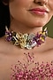 Featuring a gold finish floral choker necklace studded with multi-colored crystals, set in brass. Perfect for elevating cocktail evenings or adding sparkle to wedding functions.