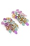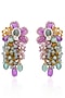 Featuring a pair of gold finish dangler earrings studded with multi-colored monalisa stones, set in brass. Ideal for weddings, festive celebrations or evening occasions.