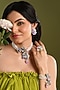 Featuring a gold finish choker necklace studded with multi-colored pearls and crystals, set in brass. It is paired with a matching pair of earrings, bracelet and ring. Ideal for weddings, festive celebrations or evening occasions.