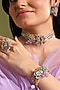 Featuring a gold finish choker necklace studded with multi-colored stones, set in brass. It is paired with a matching pair of earrings, bracelet and ring. Ideal for weddings, festive celebrations or evening occasions.