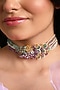 Featuring a gold finish floral choker necklace studded with multi-colored stones, set in brass. Perfect for elevating cocktail evenings or adding sparkle to wedding functions.