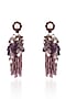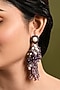 Featuring a pair of gold finish dangler earrings studded with purple monalisa stones and pearls, set in brass. Ideal for weddings, festive celebrations or evening occasions.