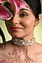Featuring a gold finish butterfly choker necklace studded with white pearls and stones, set in brass. Ideal for weddings, festive celebrations or evening occasions.