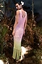 Featuring a horizon pink hand-knitted maxi dress in cotton base with a fringe hemline.