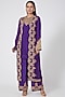 Featuring a purple kurta in semi crepe base. It is paired with matching pants and a pearl embroidered open jacket.