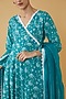 Featuring a blue angrakha anarkali in cotton base with floral print. It is paired with pants and a dupatta. Accessorise with dangler earrings and heels.