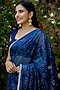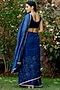 Featuring a blue saree in shimmer and chiffon base with antique zari embroidery having an attached blouse piece.