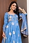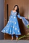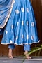 Featuring a blue anarkali in silk upada base with lace detail. It is paired with pants and a dupatta. Style with polki jewellery, soft curls and heels for festive occasions, weddings or sangeet ceremonies.