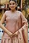 Featuring a bronze kurta in upada silk base with handwork. It is paired with a tissue flowy skirt and a dupatta. Style it with statement jewellery and heels for a summer wedding, sangeet or engagement ceremony.