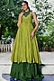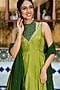 Featuring a green kurta in upada silk and organza base with embellishments. It is paired with a skirt and a dupatta. Style it with chunky earrings and heels for a festive occasion, cultural event, mehendi or sangeet ceremony.