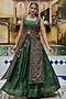 Featuring a green skirt in upada silk base. It is paired with a blouse and a sheer organza shrug. Style it with statement jewellery and heels for a festive occasion, cultural event, mehendi or sangeet ceremony.