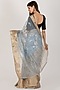 Featuring a grey saree in organza base having an attached blouse piece.