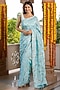 Featuring a light blue saree in upada silk base with golden jacquard butterfly detailing. Accentuate with gold jewellery and heels for a festive occasion or a pooja ceremony.
