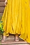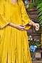Featuring a mustard anarkali in upada silk base with a V-neckline and embroidery. It is paired with pants and a dupatta. Style with polki jewellery, soft curls and heels for festive occasions, weddings or sangeet ceremonies.
