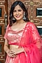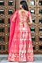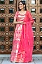 Featuring a neon pink lehenga in raw silk base with zardosi embroidery. It is paired with a matching blouse and a dupatta.