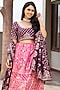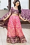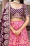Featuring a pink and burgundy lehenga in silk blend base. It is paired with a blouse and a dupatta. Accentuate it with diamond jewellery and block heels for sangeet, engagement ceremonies or weddings.
