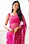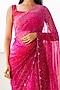 Featuring a rani pink bandhani saree in georgette base with beads and stone work. It is paired with a semi-stitched blouse. Accentuate it with diamond jewellery and block heels for sangeet, engagement ceremonies or weddings.