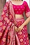 Featuring a rani pink lehenga in silk blend base. It is paired with a blouse and a dupatta. Accentuate it with diamond jewellery and block heels for sangeet, engagement ceremonies or weddings.